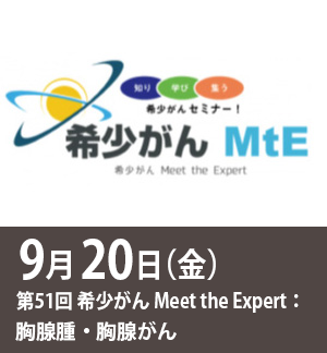 | 2019年10月31日 | 【第51回 希少がん Meet the Expert:胸腺腫・胸腺がん】のビデオを公開しました。 |